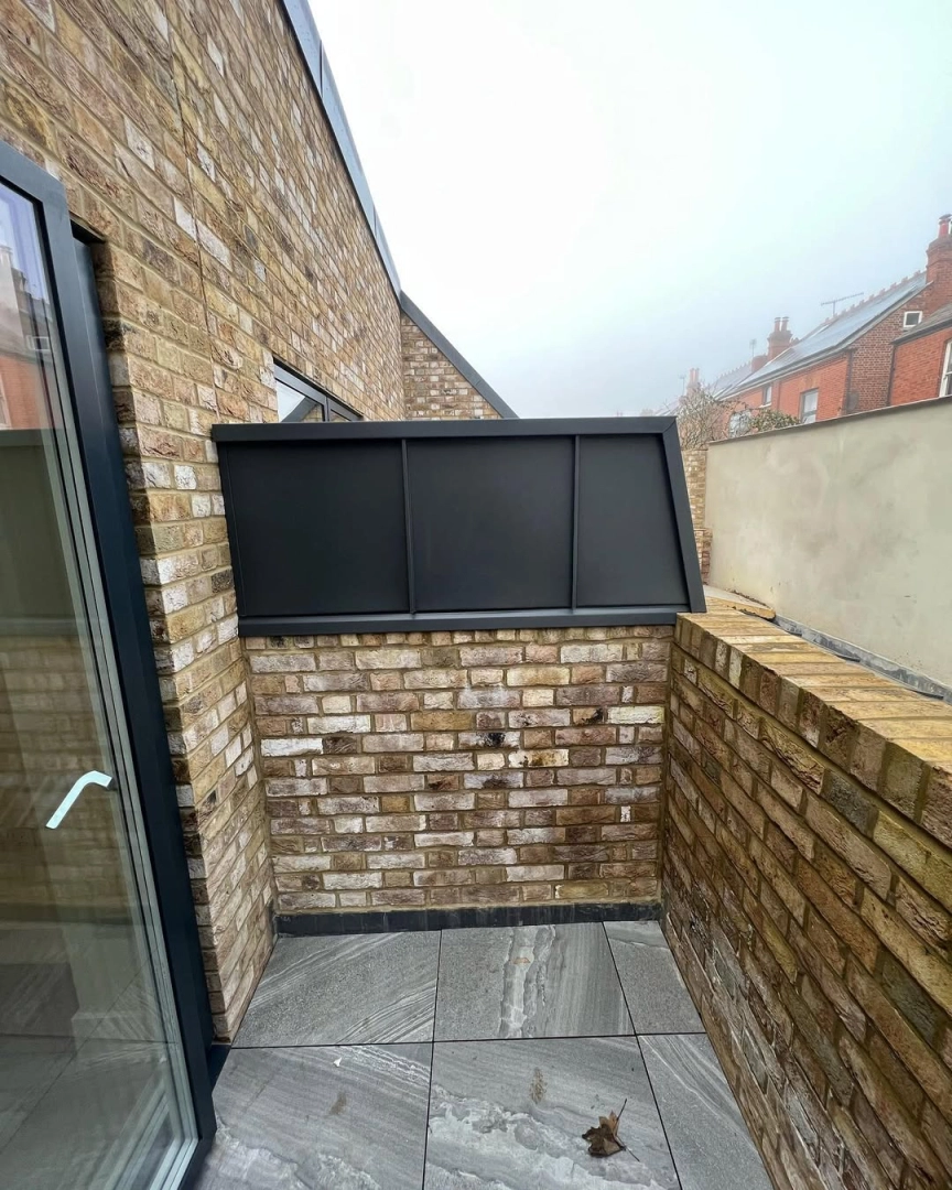 This project combines clean lines with a modern metal finish, delivering a durable and low maintenance solution that sits perfectly within a residential setting. The dark metal tones work well with the glazing and surrounding brickwork, giving the extension a sharp and contemporary look.