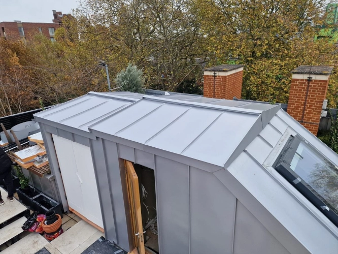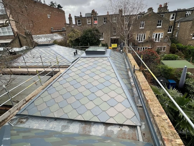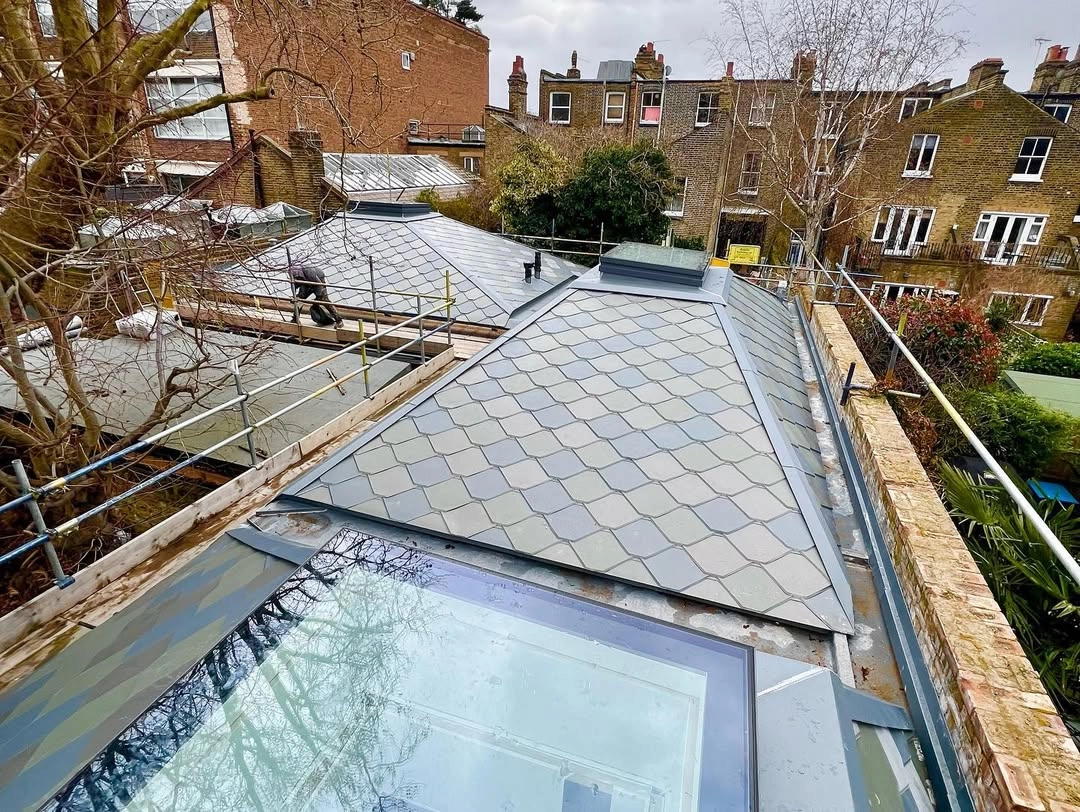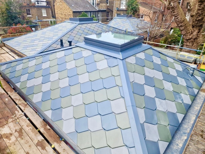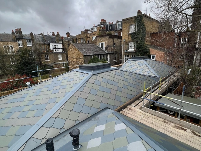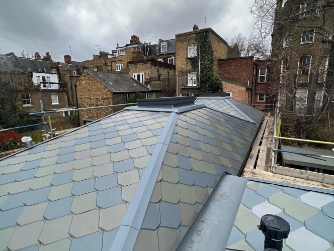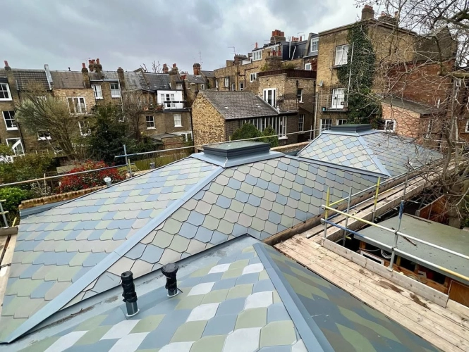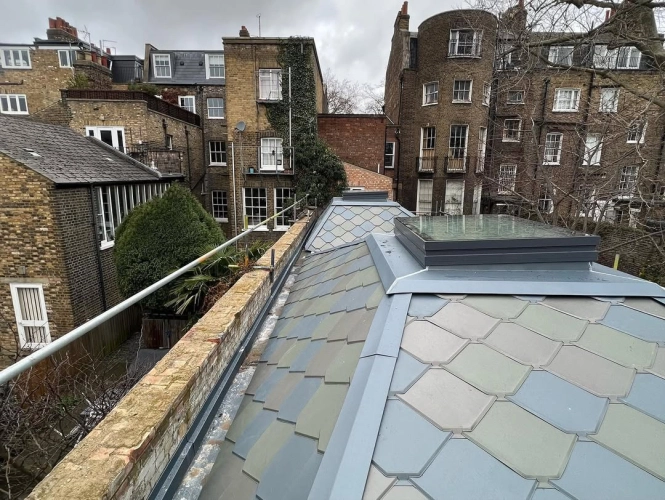 This residential project in Islington features VMZINC shingle roofing installed across multiple roof...